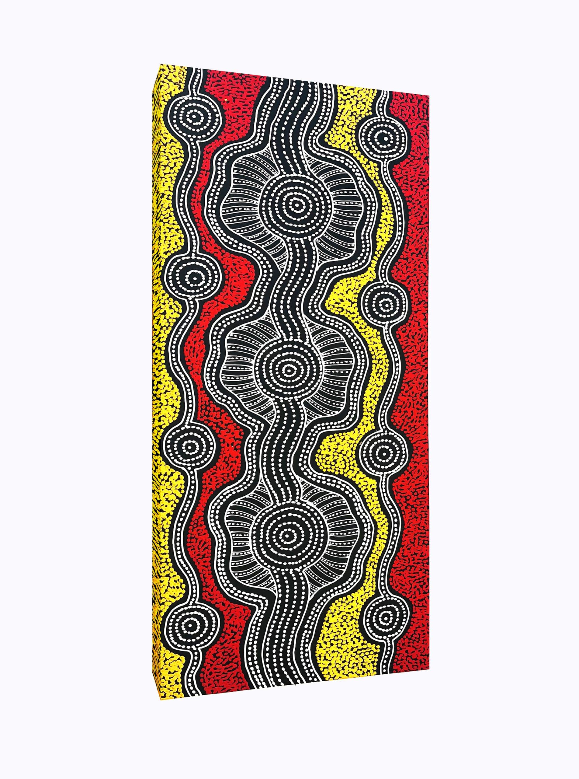 This aboriginal art is 100% hand painted by Numina Sisters.